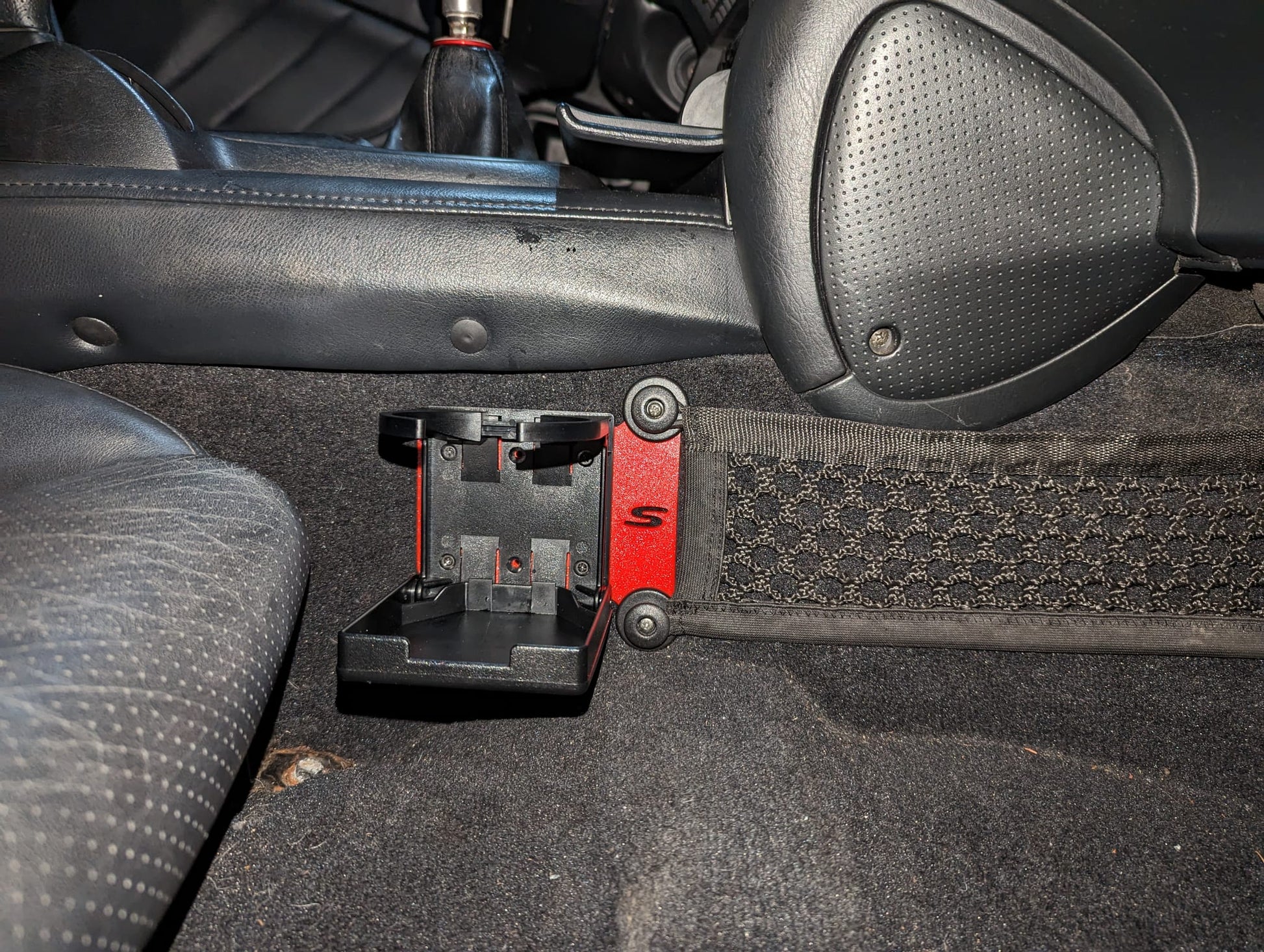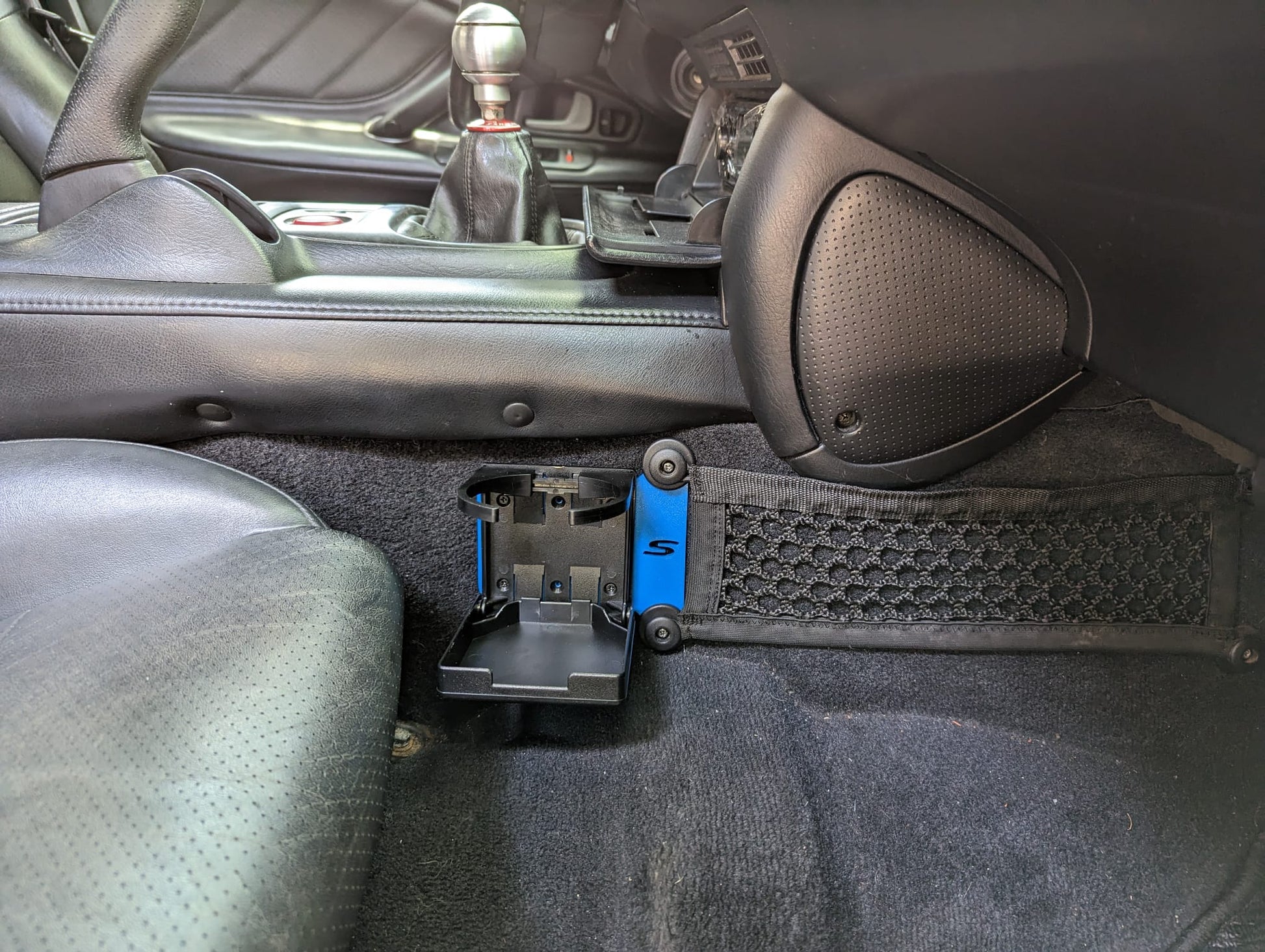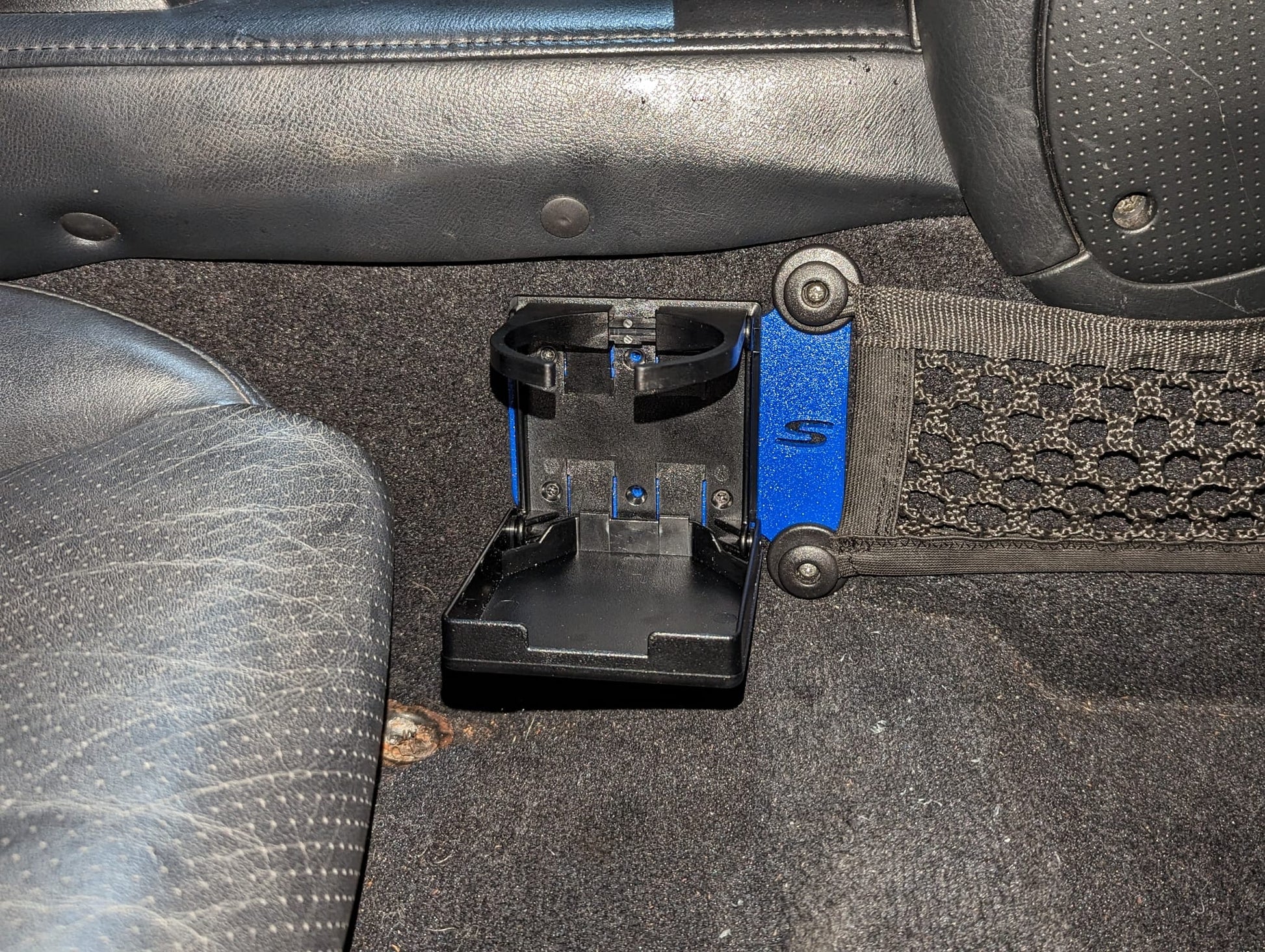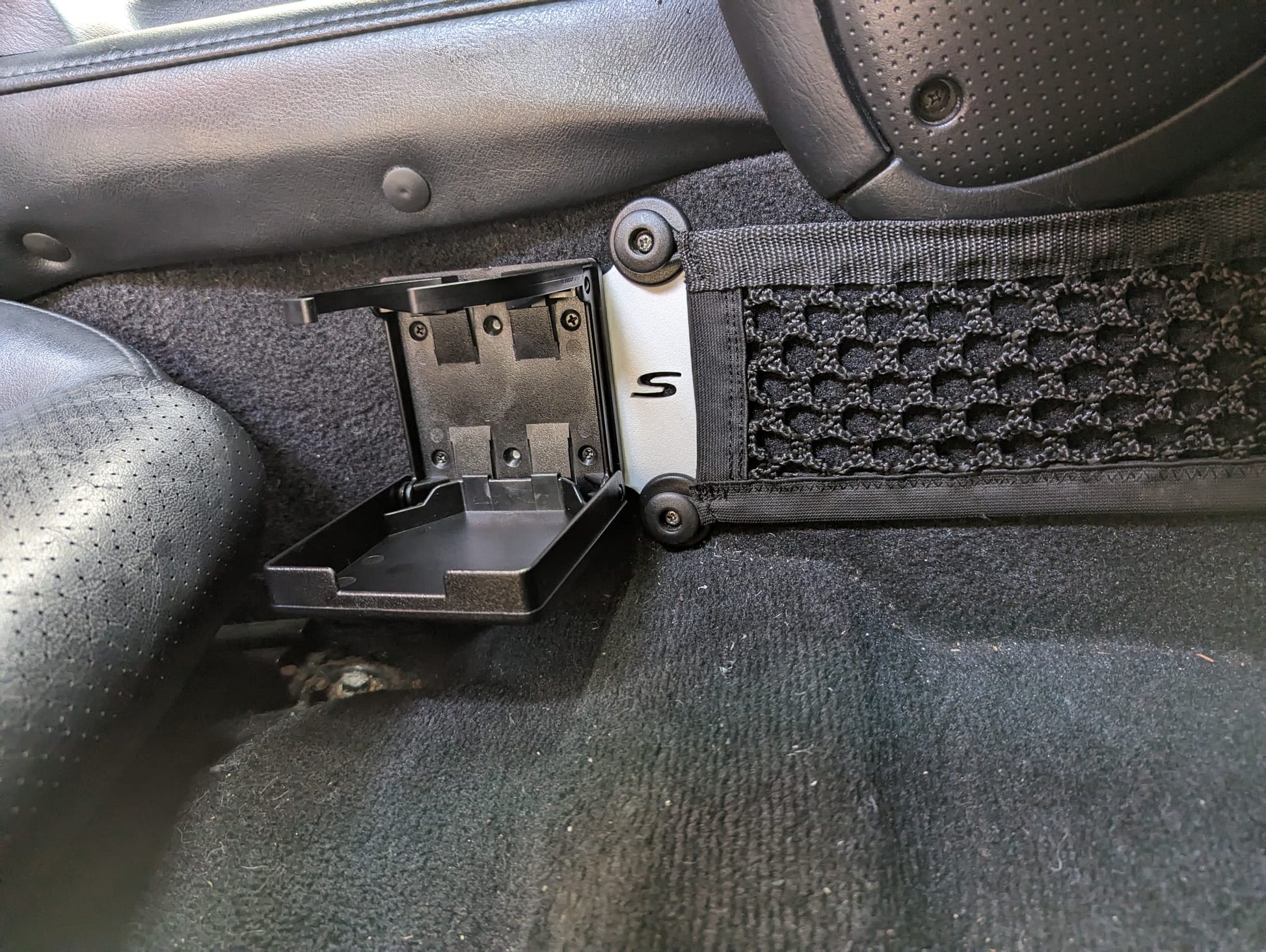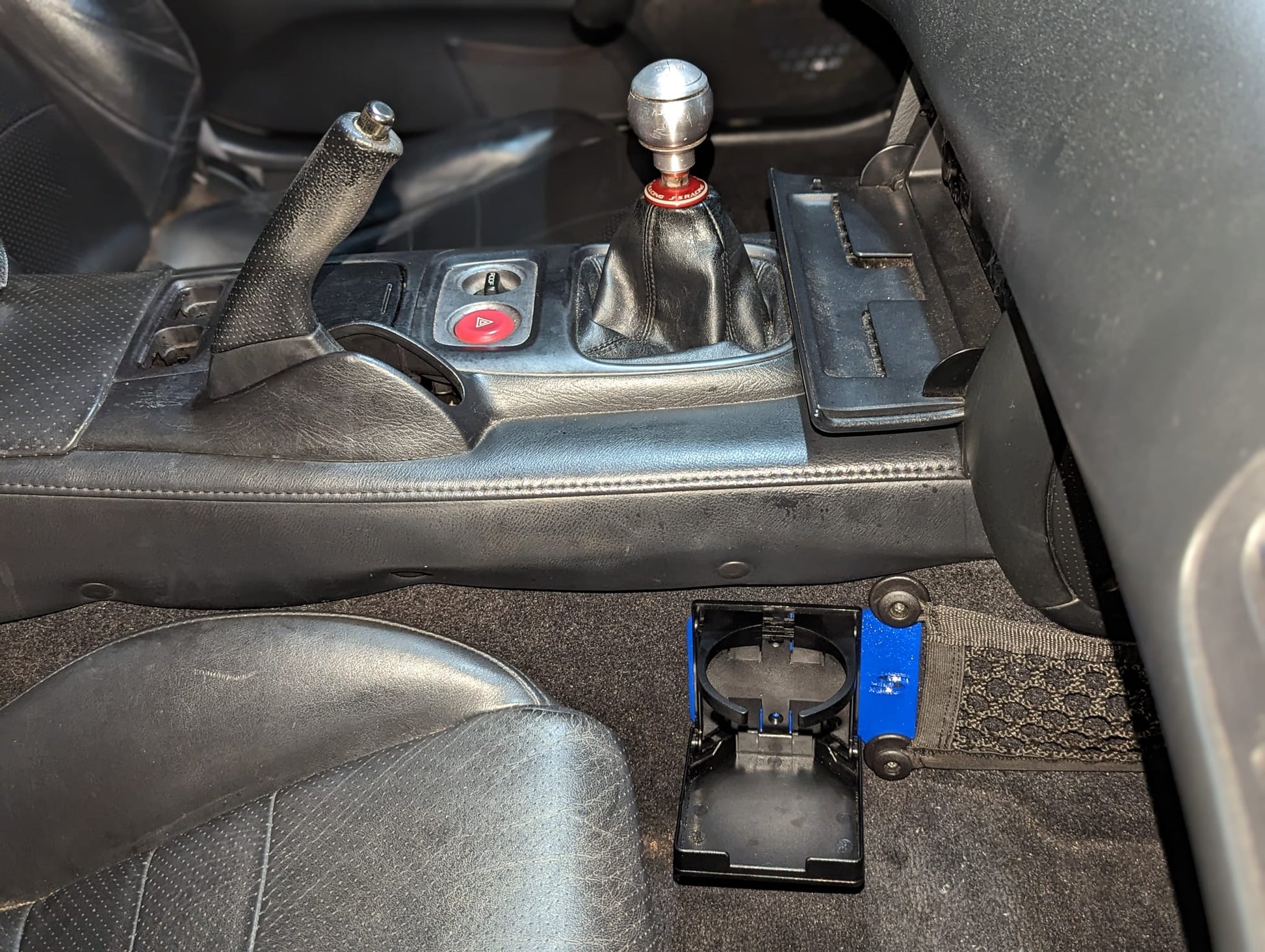 This Stylish foldable cup holder kit includes the "S" mount AND adjustable foldable cup holder. Designed for convenience and ease of use, this foldable cup holder is a smart addition to your Honda S2000's interior. It provides a solution to the inconvenience of the original cup holder's location, which causes any drink to get in the way of shifting gears. It's low profile and foldable design allows for minimum disturbance to your passenger.